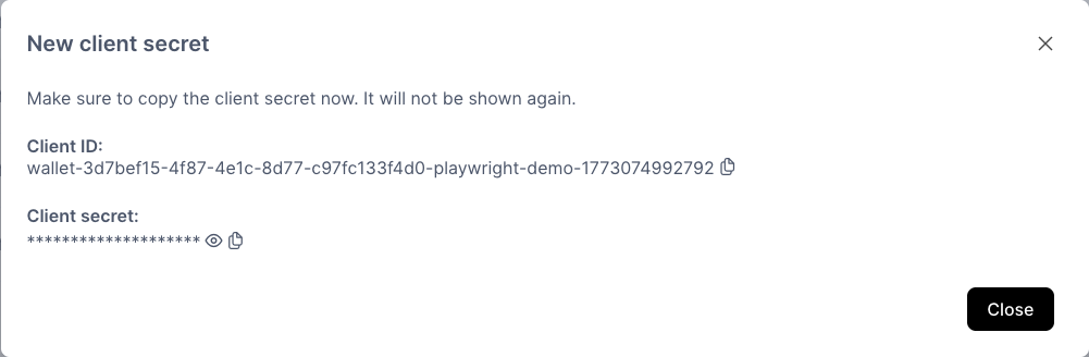 The client secret is only shown once. Store it securely — it cannot be retrieved afterwards.