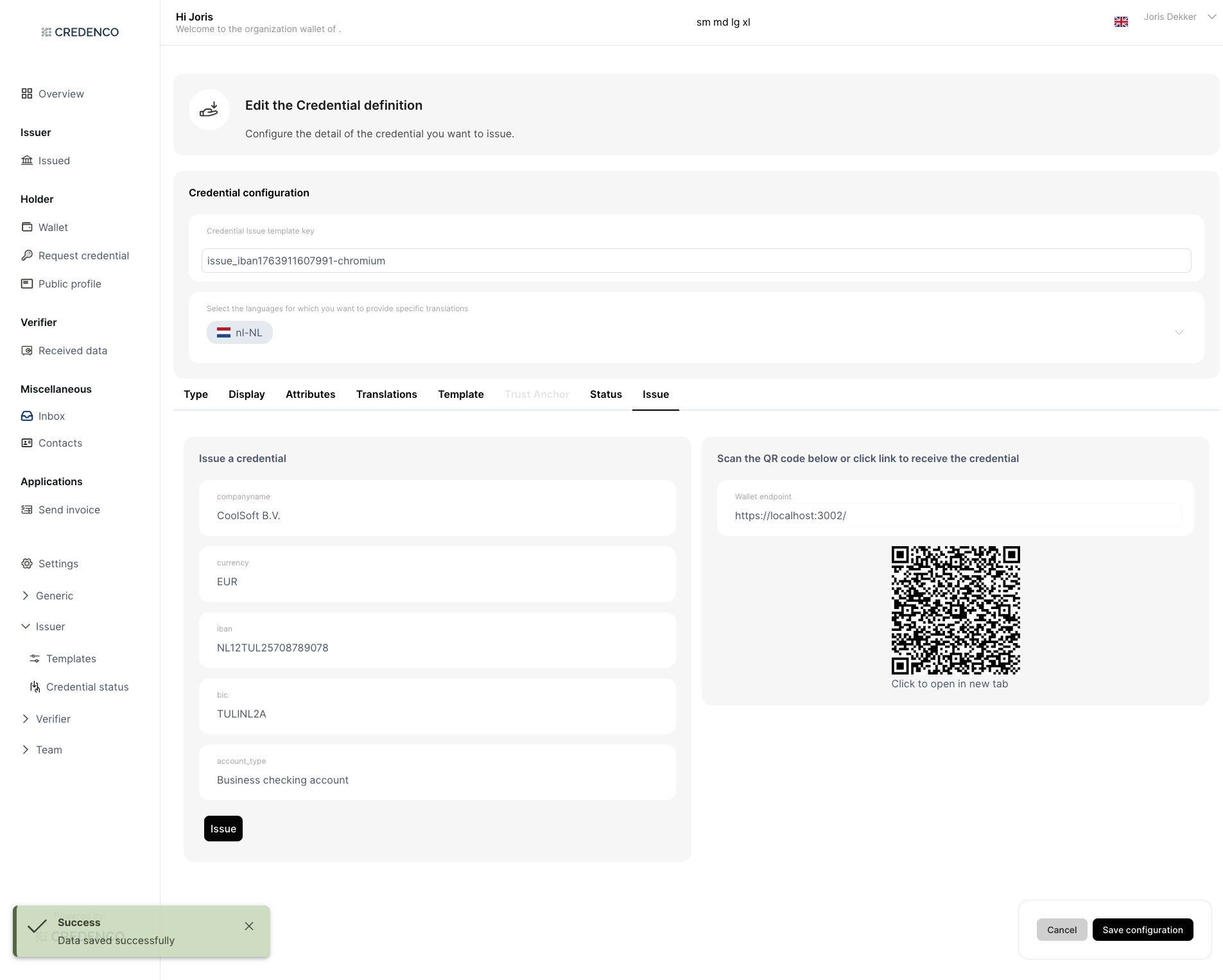 - If you want to issue the credential to a personal wallet you need to scan the QR code